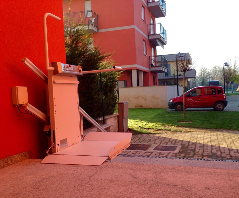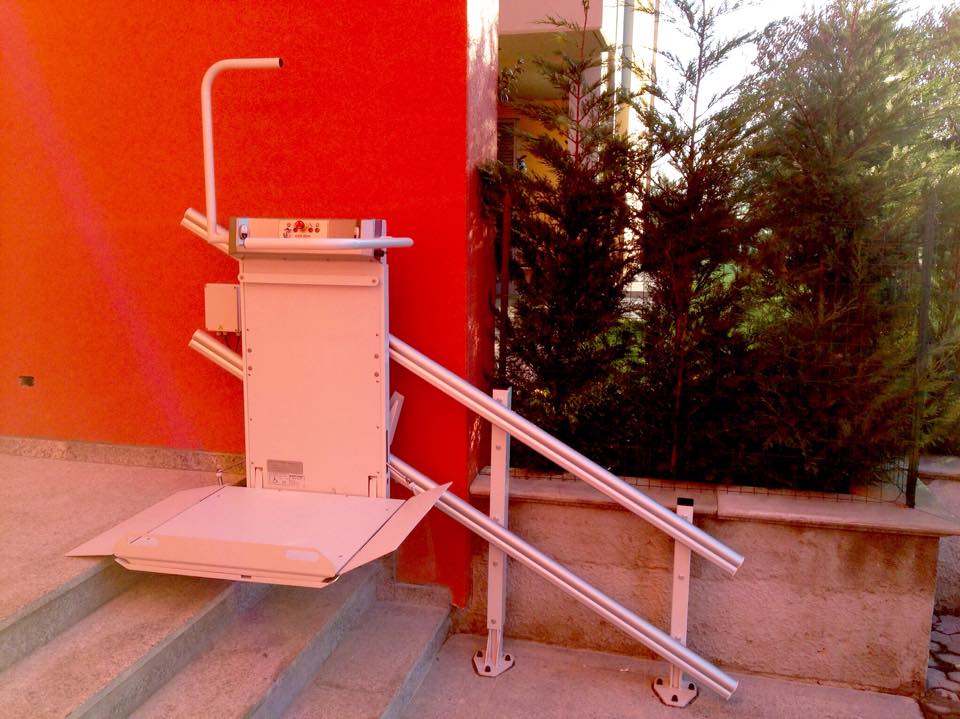 - Installazione di un servoscala a pedana con guida rettilinea.