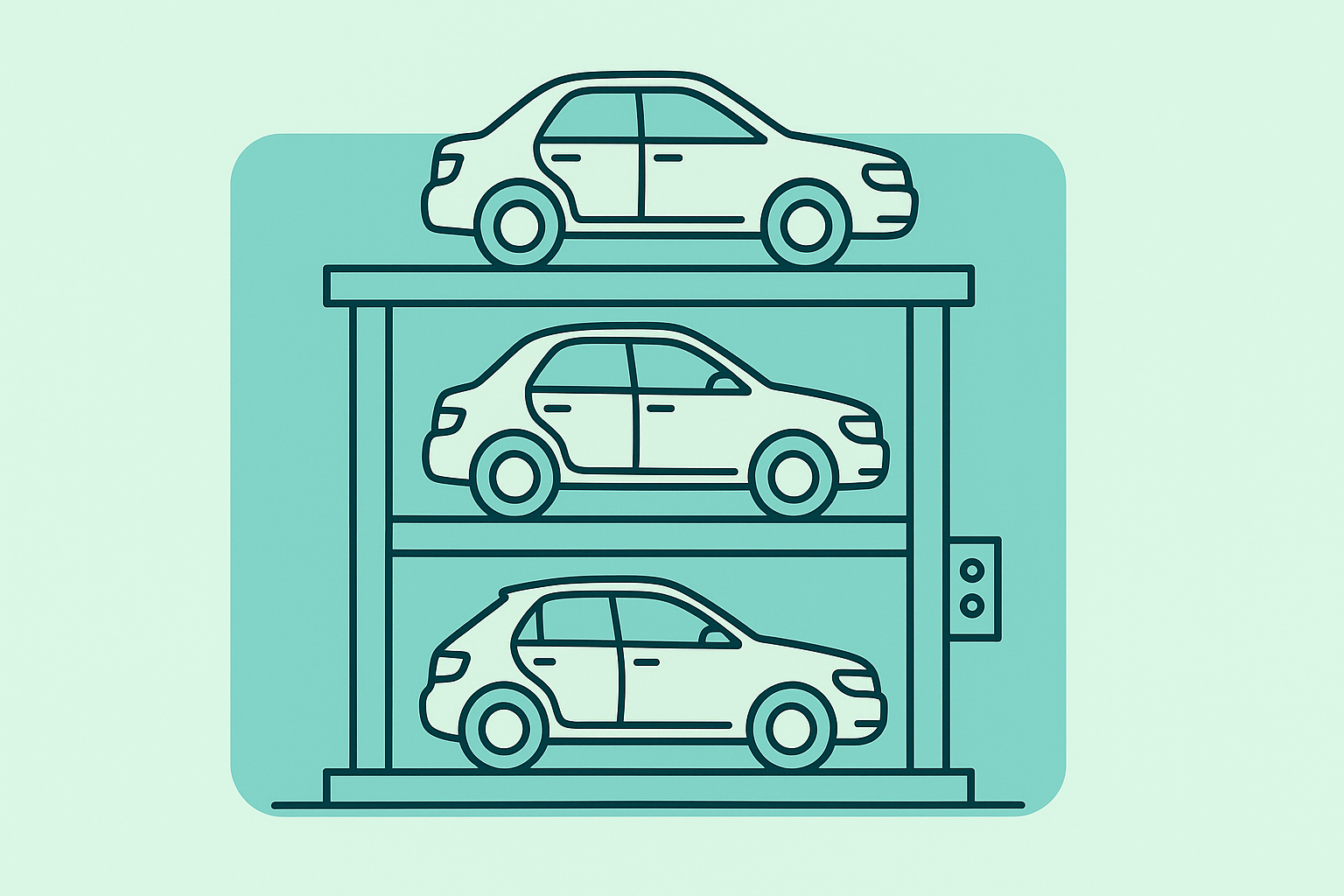 Il montauto multipiano è una piattaforma elevatrice per veicoli che permette di parcheggiare due o tre auto nello spazio di un solo posto tradizionale, posizionandole su diversi livelli sovrapposti.